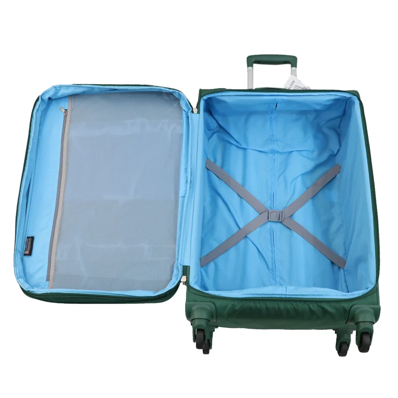 چمدان کارلتون مدل AMBER LITE سایز بزرگ از تولیدات خاص با ساختار سبک و با ویژگی امن این برند انگلیسی است، این چمدان به دلیل تراکم بالای بافت پارچه استقامت بالایی دارد و دارای قفل امنیتی سری TSA ای و چهار چرخ گردان 360 درجه برای حملی اسان است.ابعاد سایز بزرگ: 48*30*78وزن سایز بزرگ: 3100 گرم