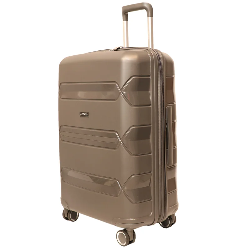 مجموعه 4 عددی چمدان مسافرتی پاور مدل هارد 2024، جنس بدنه پلی پرو پیلن کاملا نشکن دارای قفل ضد سرقت بین المللی tsa و کابل پاور بانک،چرخ ها دابل چرخش 360 درجه سایلنت ، دسته تراول آلمینیوم ،زیپ ها دبل نمره 8 و زیپ افزایش حجم ابعاد سایز متوسط 25*40*60 وزن 4 کیلو گرم
